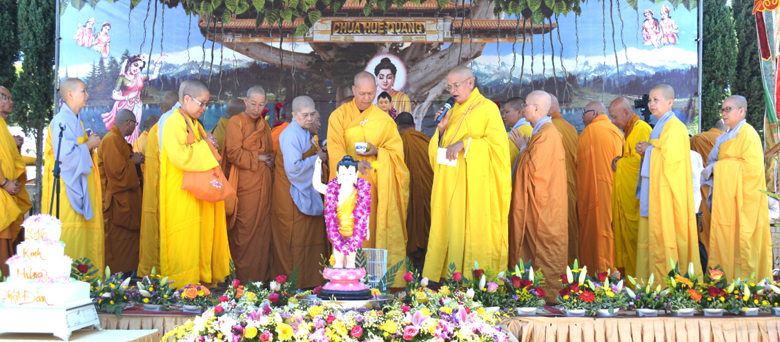 Santa Ana (Vân Giang) - Vào lúc 11:00 trưa chủ Nhật ngày 22 tháng 5 năm 2016, Tổ Đình Chùa Huệ Quang do Hòa Thượng Thích Minh Mẫn làm Viện Chủ đã long trọng tổ chức Đại Lễ Phật Đản Phật Lịch 2560 (2016) Khoảng 9 giờ sáng Phật Tử đã tề tựu rất đông tại Hội trường bên cạnh chùa Huệ Quang, mặc dù trời nóng gắt nhưng đồng hương Phật tử đã kiên nhẫn tham dự suốt buổi lễ. Khoảng 80 Chư Tôn Giáo Phẩm, Chư Tôn Đức Tăng Ni và khoảng một ngàn đồng hương Phật tử Tham dự. Như thông lệ hằng năm, trước khi vào lễ chính thức có buổi thuyết pháp nói về "Ý Nghĩa Ngày Đản Sinh."