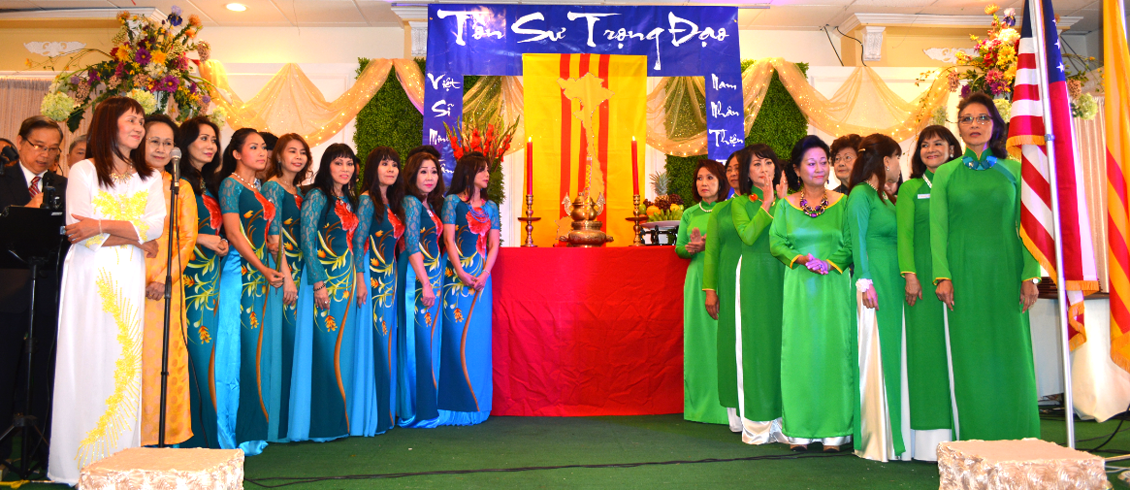 Trên sân khấu có thiết kế bàn thờ có chữ "Tôn Sư Trọng Đạo" có lá quốc kỳ Việt Nam Cộng Hòa treo chính giữa, hai bên có hai câu đối: "Việt Sĩ Minh Tâm Văn Hóa Thịnh – Nam Nhân Thiện Trí Quốc Gia Hưng"
