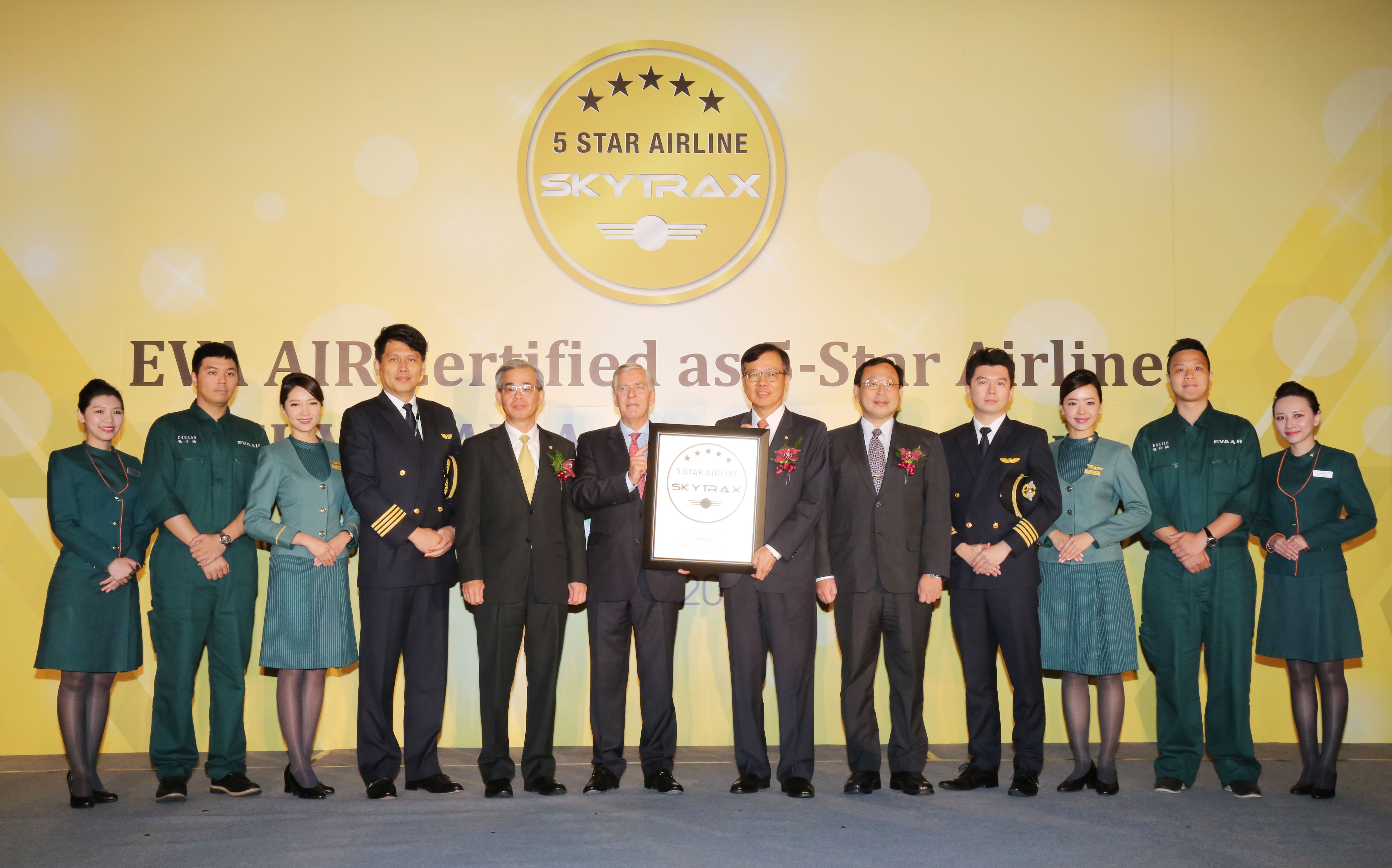 EVA gia nhập vào nhóm các hãng hàng không được công nhận là tốt nhất. Các hãng hàng không 5-star còn lại bao gồm All Nippon Airways, Asiana Airlines, Cathay Pacific Airways, Garuda Indonesia, Hainan Airlines, Qatar Airways và Singapore Airlines.