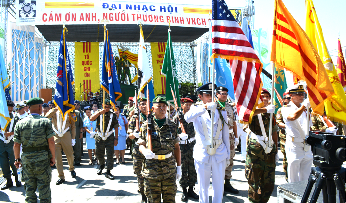 Chương trình Đại Nhạc Hội Cám Ơn Anh Người Thương Binh VNCH kỳ thứ 10 năm nay được mở đầu với nghi thức rước Quốc Quân Kỳ vào vị trí hành lễ do toán hầu kỳ của Liên Hội Cựu Chiến Sĩ VNCH Nam California đảm trách.