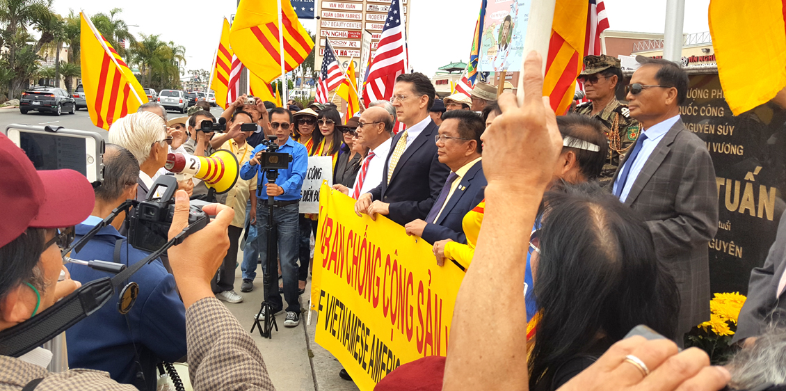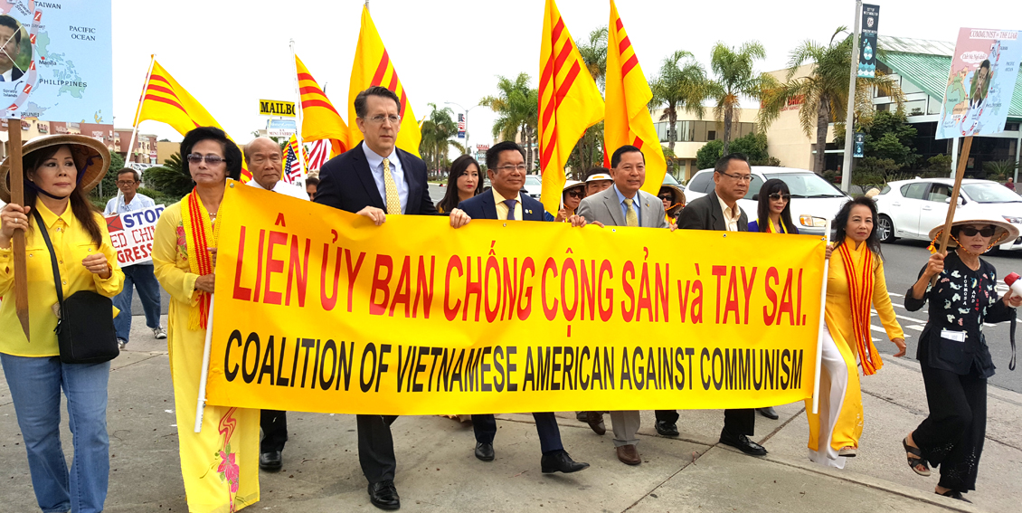 Cuộc diễn hành bắt đầu lúc 10 giờ 45 đi đầu là 2 lá cờ Hoa Kỳ và VNCH tiếp đến là quý quan khách, quý vị dân cử cùng đồng hương đi dọc Đại Lộ Bolsa từ trước khu vực tượng đài Đức Thánh Trần Hưng Đạo xuống hướng đường Busha và đi ngược lại sau hơn 45 phút đi diễn hành đoàn biểu tình trở lại địa điểm xuất phát trưởng ban tổ chức ngỏ lời cảm tạ gởi đến mọi người: mặc dầu thông báo trong một thời gian ngắn nhưng đồng hương đã tham dự một cách đông đảo, chúng tôi ước mong tinh thần đó luôn được giữ mãi và phát triển không ngừng