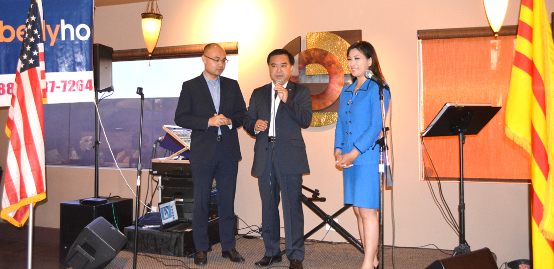 Tiếp theo lời chào mừng của BS. Kimberly Ho, Ứng Cử Viên Nghị Viên Hội Đồng Thành Phố Westminster lên ngỏ lời chào mừng và cảm ơn sự tham dự của các cơ quan truyền thông, qúy vị quan khách cũng như qúy bác, qúy chú, qúy vị mạnh thường quân, cùng đồng hương thân hữu.