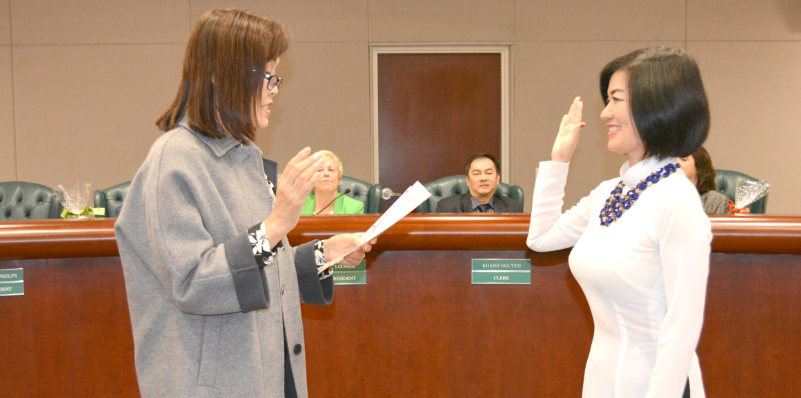 Westminster (Vân Giang) - Tại District Office Board Room 14121 Cedarwood Ave Thành Phố Westminster vào lúc 7 giờ tối Thứ Năm ngày 8 tháng 12 năm 2016, Học Khu Westminster đã tổ chức buổi lễ tuyên thệ cho ông Jamison, Giám Đốc Học Khu (tái đắc cử) và Bà Frances Nguyễn (Nguyễn Thế Thủy) Tân Ủy Viên Giáo Dục Học Khu Westminster.