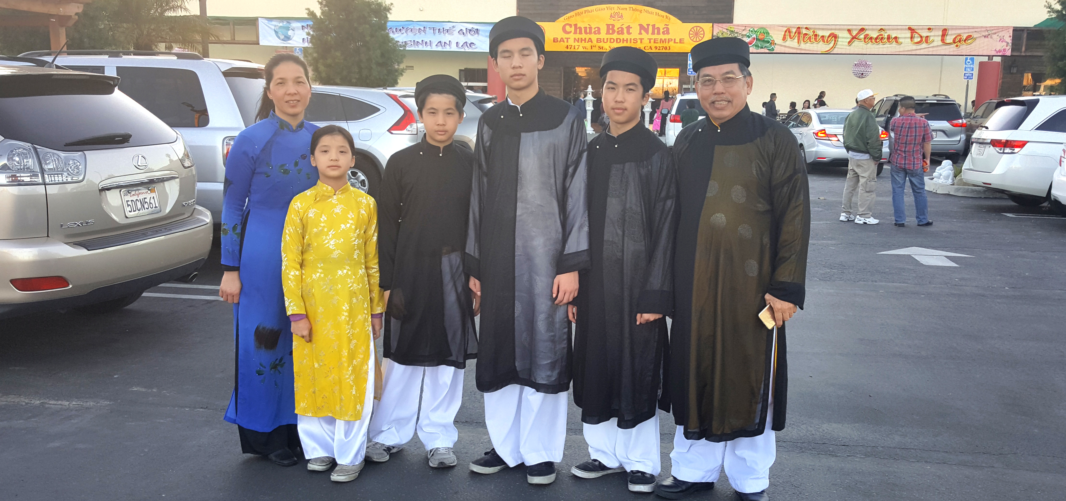 Ông bà Minh Trần từ Saigon Việt Nam: tôi sang đây thăm con gái và ăn Tết cùng các con và các cháu, lần đầu tiên đến Mỹ thấy cái gì cũng lạ cũng đẹp, ở đây mọi người gặp nhau chào hỏi ân cần cảm thấy mình không lạc lõng, đi ra đường thì an toàn quá, một điều nói ra thì thật khôi hài có người cho mình là bôi bác: ở đây đi vào chánh điện lễ Phật đi ra giày dép mình vẫn còn nguyên, chứ bên Việt Nam bỏ giày dép ra, vào chánh điện lễ Phật ra, đôi khi giày dép mình không cánh mà bay, phải đi chân không về nhà.