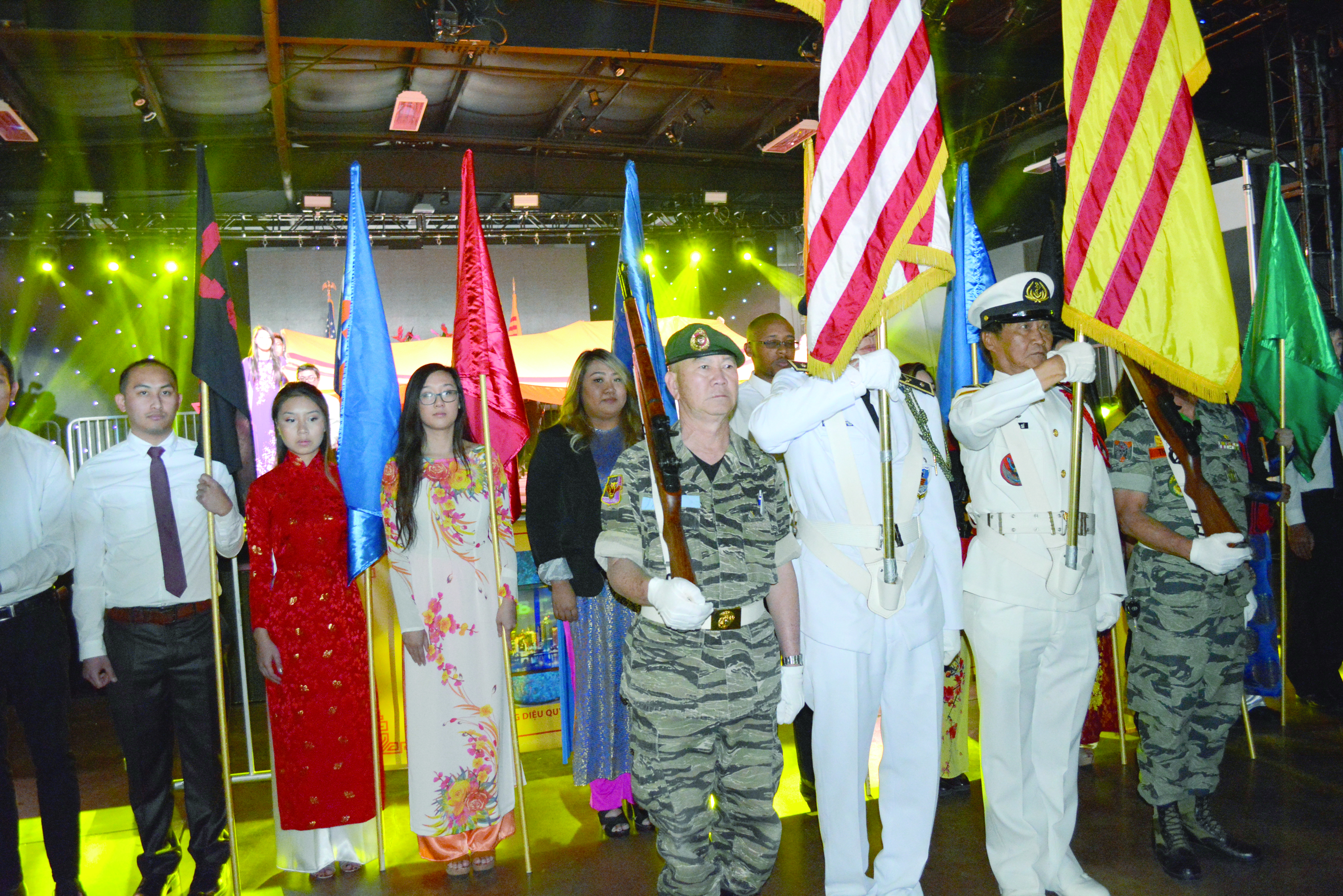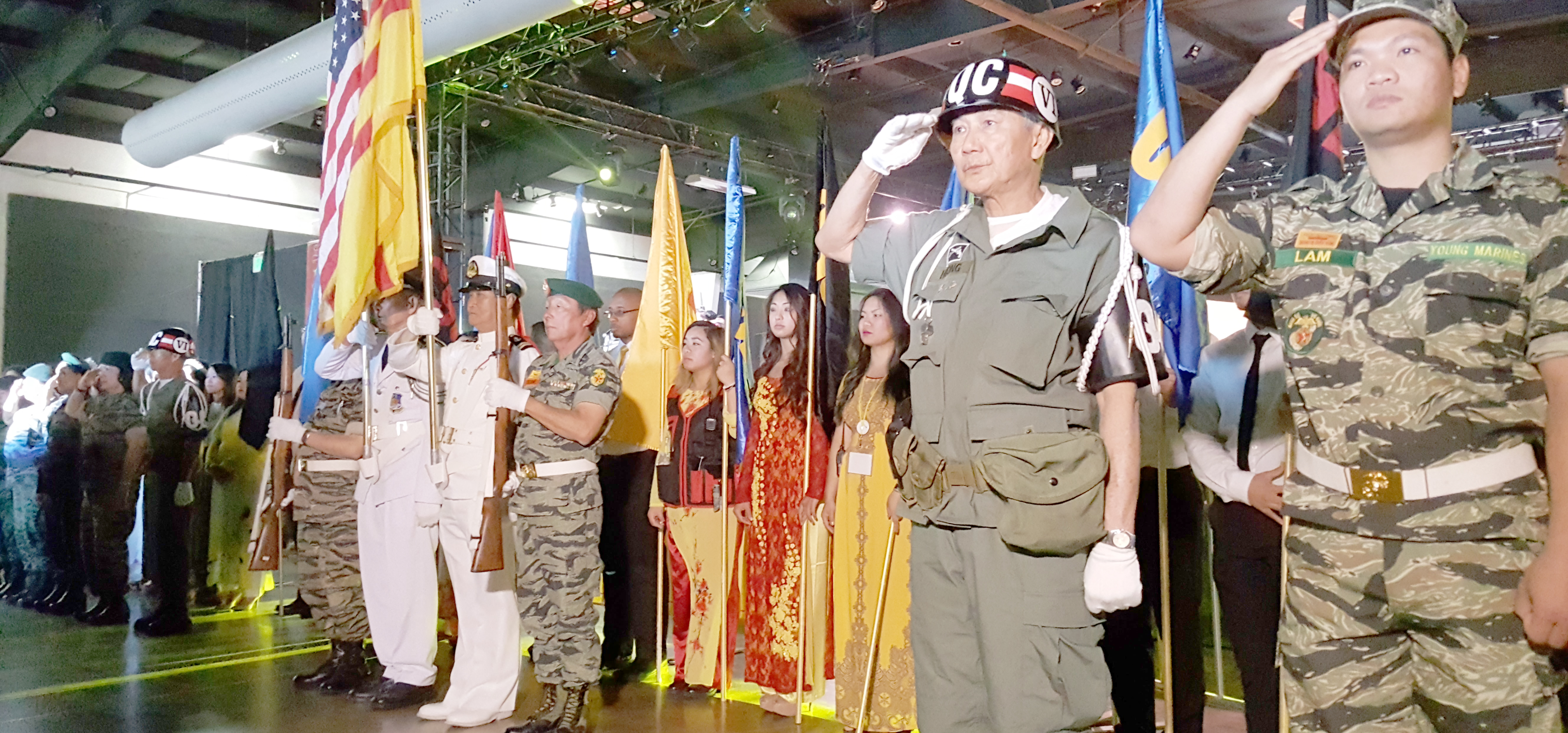 Liên Hội cựu chiến sĩ VNCH rước quốc kỳ VNCH, Hoa Kỳ vào vị trí hành lễ.