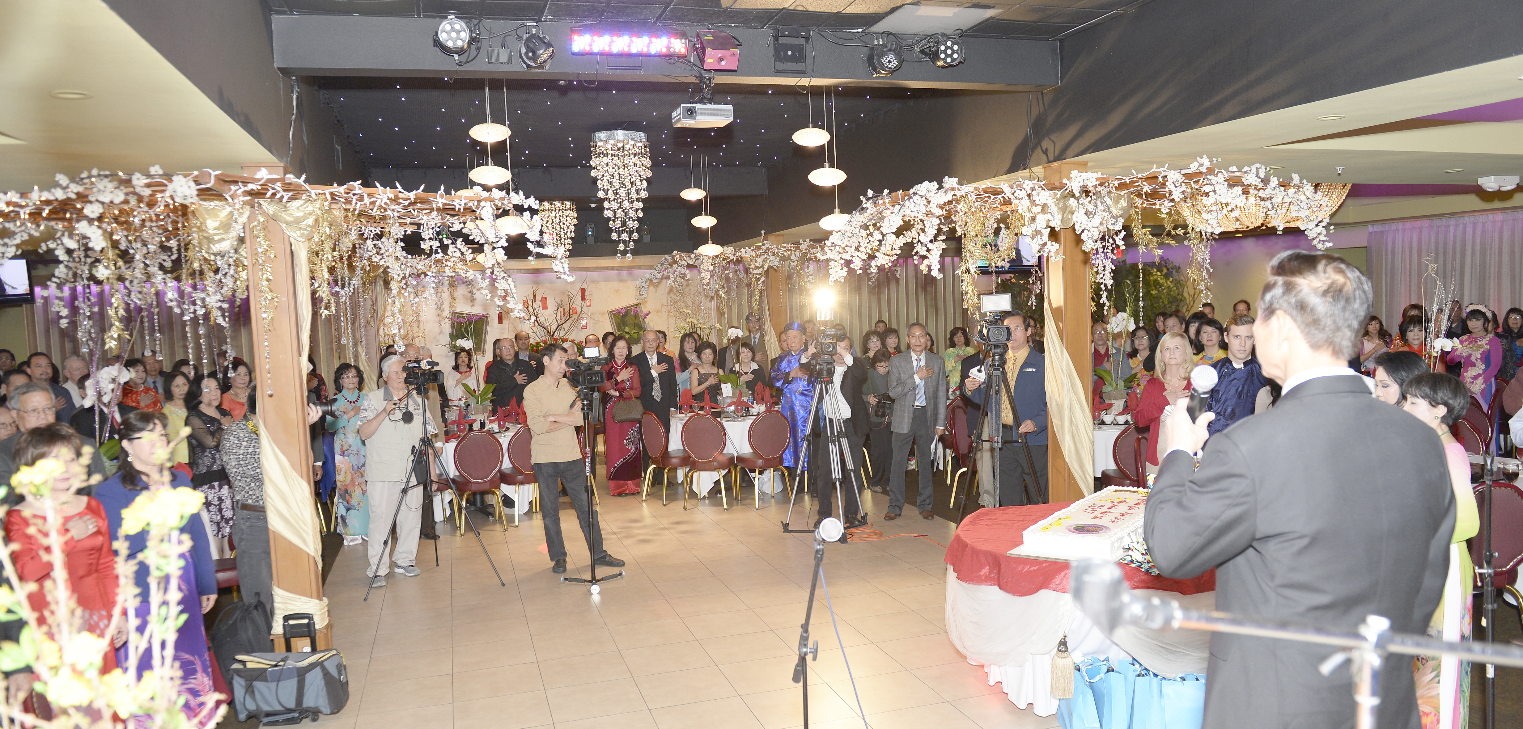 Chương trình họp mặt được mở đầu với nghi thức chào quốc kỳ VNCH, Hoa Kỳ phút mặc niệm.