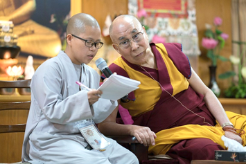 Đức Đạt Lai Lạt Ma hôm 30/5/2017 đã tiếp kiến, giảng pháp cho một nhóm Phật Tử từ Việt Nam tới thăm bản doanh của Ngài ở thị trấn Dharamsala, Ấn Độ. Người thông ngôn trực tiếp từ Tạng ngữ sang Việt ngữ trong buổi giảng pháp có lẽ là một ni sư Việt Nam đã tới du học trong một tu viện Tây Tạng ở đây từ nhiều năm.