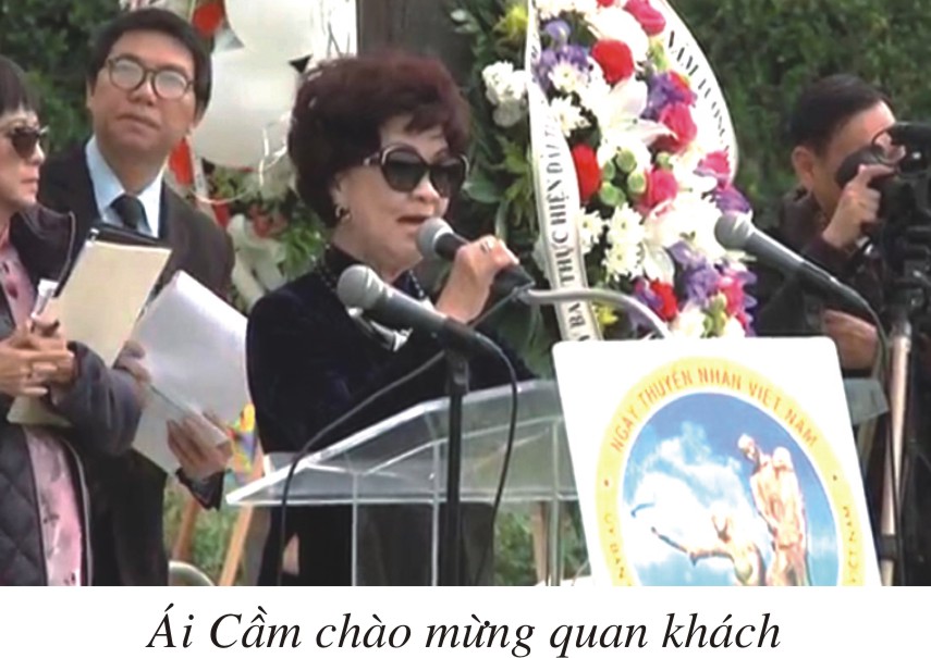 Mở đầu buổi lễ, nhà báo Ái Cầm thay mặt ban tổ chức lên chào mừng và cảm ơn sự hiện diện của tất cả qúy vị lãnh đạo tinh thần các tôn giáo, qúy vị dân cử quan khách, hội đoàn, đoàn thể, quý cơ quan truyền thông và đồng hương, quý thân nhân, bộ nhân đã bỏ thời giờ qúy báu đến tham dự buổi lễ hôm nay, Bà nói: “Nếu không có ngày 30 tháng Tư thì sẽ không có hiện tượng thuyền nhân” đó là lý do chúng ta đánh dấu kỷ niệm 10 năm ngày thành lập Đài Tưởng Niệm Thuyền Nhân Việt Nam tại nghĩa trang Westminster Memorial Park.