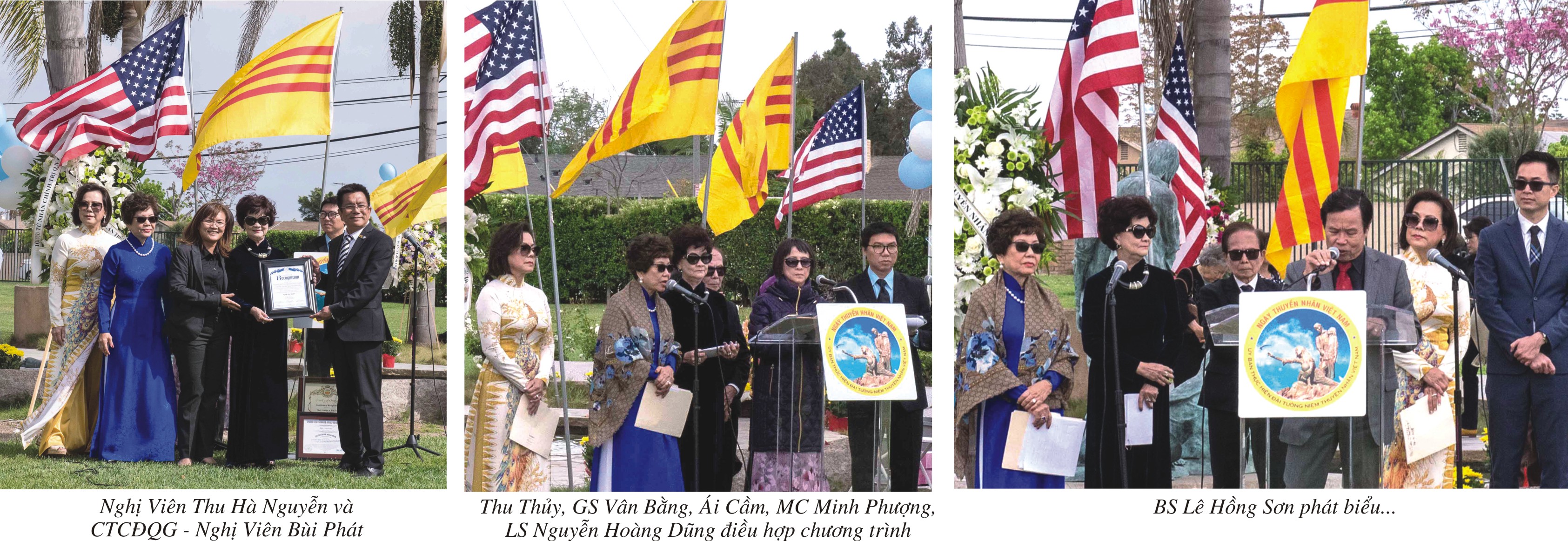 Tiếp theo phần phát biểu của Thị Trưởng Tạ Đức Trí và các Nghị Viên trong Hội Đồng Thành Phố, tất cả đều ca ngợi việc làm đầy ý nghĩa và hứa sẽ tiếp tục hổ trợ cho Ủy Ban, sau đó trao bằng tưởng lệ của Thành Phố đến Ủy Ban Xây Dựng Tượng Đài.