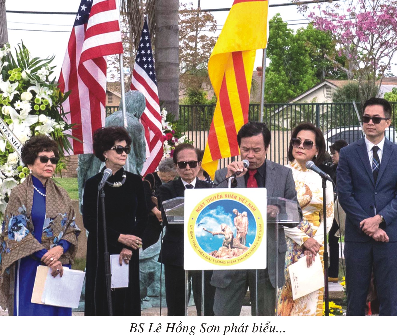 Tiếp theo BS. Lê Hồng Sơn, một trong những thành viên sáng lập Tượng Đài Thuyền Nhân lên phát biểu, ông cho biết: “ nếu không có ngày tưởng niệm 30 tháng Tư thì không có ngày Tưởng Niệm Thuyền Nhân, bài phát biểu khá dài ông cũng đã nói lên những thảm trạng đau thương mà thuyền nhân, bộ nhân đã gánh chịu...”