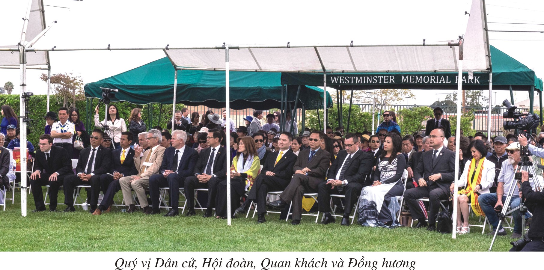 GHPGVNTNHN Trụ trì Chùa Điều Ngự HT. Thích Minh Nguyện, nguyên Chủ Tịch Hội Đồng Liên Tôn Hoa Kỳ, Viện Chủ Chùa Trúc Lâm, GS. Nguyễn Thanh Giàu, Chủ Tịch Hội Đồng Liên Tôn Hoa Kỳ, Chánh Trị Sự Hà Vũ Băng, MS. Lê Minh, cùng các thành viên trong, Hội Đồng Liên Tôn Hoa Kỳ, GS. Trần Quang Linh, Quyền Tộc Đạo Cao Đài Little Saigon, MS. David Huỳnh, Qúy vị dân cử, đại diện dân cử Liên Bang, Tiểu Bang có Dân Biểu Tyler Diệp, LS. Andrew Đỗ, Giám Sát Viên Địa Hạt 1 Quận Cam và phu nhân là bà Cheri Phạm, Chánh Án Tòa Thượng Thẩm Quận Cam, LS. Lê Công Tâm, Cô Christy Linh Lê, Anh Lý Vĩnh Phong, Anh Lê Hữu Bảo, Cô Quyên Trần... Thị Trưởng Thành Phố Westminster ông Tạ Đức Trí, Phó Thị Trưởng Kimberly Hồ và các Nghị Viên Sergio Contreras, Nguyễn Mạnh Chí, Tài Đỗ, ông Hiếu Nguyễn, Chánh Lục Sự Quận Cam, và phụ tá Billy Lê, Ông Phát Bùi, Phó Thị Trưởng Thành Phố Garden Grove, ông cũng là Chủ Tịch Cộng Đồng Người Việt Quốc Gia Nam California cùng Nghị Viên Thu Hà Nguyễn, Đại Tá Nguyễn Đình Vinh, ĐT. Lê Bá Khiếu, BS. Võ Đình Hữu, Chủ Tịch Cộng Đồng Người Việt Quốc Gia Liên Bang Hoa Kỳ, ông Lê Quang Dật, ông Hứa Trung Lập, đại diện Đền Thờ Đức Thánh Trần, ông Tạ Mộng Tân, Chủ Tịch Hội Cựu Tù Nhân Chính Trị Quảng Nam Đà Nẵng, ông Lê Văn Sáu Chủ Tịch Liên Hội Cựu Chiến Sĩ Nam California, ông Bùi Đẹp, Trung Tâm Trưởng Tập Thể Chiến Sĩ Tây Nam Hoa Kỳ, BS. Trương Văn Như, LS. Nguyễn Hoàng Dũng, một số đại diện các hội đoàn, đoàn thể, đảng phái, các hội đồng hương, Ban Tù Ca Xuân Điềm, Câu Lạc Bộ Tình Nghệ Sĩ, Ban Hợp Ca Tập Thể Chiến Sĩ, các cơ quan truyền thông…