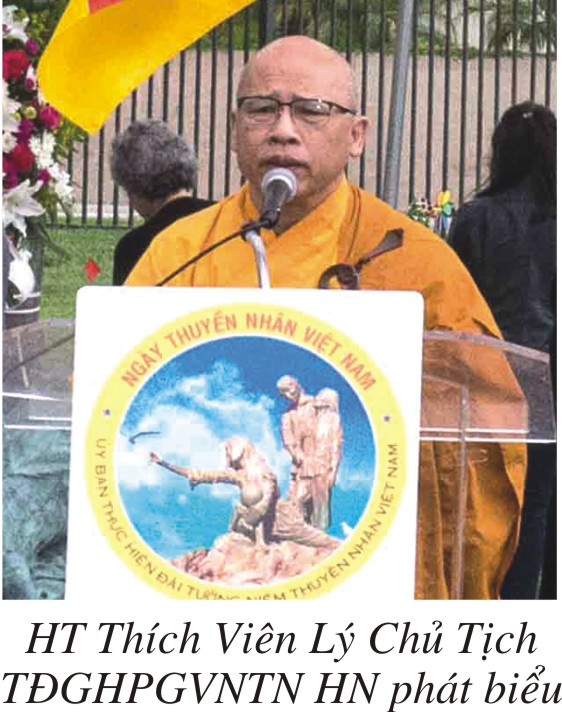 Tiếp tục chương trình, Ban tổ chức mời HT. Thích Viên Lý lên phát biểu, trong lời phát biểu HT. đã tán thán việc làm đầy ý nghĩa của Ủy Ban Xây Dựng Tượng Đài Thuyền Nhân. HT. nói: “Trong lịch sử Việt Nam cũng như trên thế giới chưa bao giờ có một cuộc vượt biên, vượt biển tìm tự do, bất chấp hiểm nguy như chúng ta đã thấy ngày hôm nay…” Tiếp theo phần phát biểu của GS. Nguyễn Thanh Giàu, ông cũng đã ghi nhận những đóng góp lịch sử mà Ủy Ban Xây Dựng Tượng Đài đã làm, ông cảm ơn Ủy Ban đã bỏ nhiều công sức trong thời gian dài để xây dựng và bảo tồn tượng đài, vì đây là dấu tích lịch sử cho con em chúng ta tìm hiểu để biết cái giá trị của hai chữ tự do.