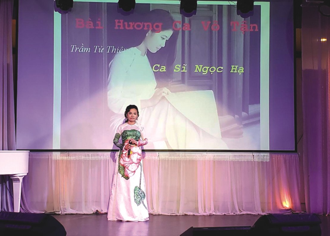 Chương trình tưởng niệm nhạc sĩ Trầm Tử Thiêng và nhạc sĩ Nhật ngân với 2 MC: Hoàng Tấn Kỳ và Bích Ngọc, được mở đầu với nghi thức chào quốc kỳ VNCH, Hoa Kỳ và phút mặc niệm