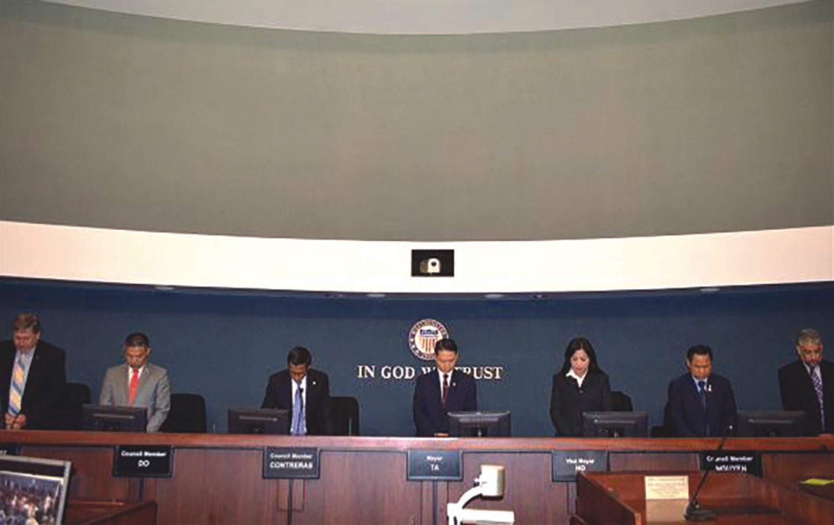 Westminster -Trong phiên họp thường lệ của Hội Đồng Thành Phố Westminster vào tối Thứ Tư ngày 14 tháng 8 năm 2019 với sự hiện diện của Thị Trưởng Tạ Đức Trí, Phó Thị Trưởng Kimberly Hồ, Nghị Viên Sergio Contreras, Nghị Viên Tài Đỗ, Nghị Viên Chí Charlie Nguyễn và một số các viên chức Thành phố, Sở Cảnh Sát… Ngoài ra con có rất đông các cơ quan truyền thông Việt-Mỹ.