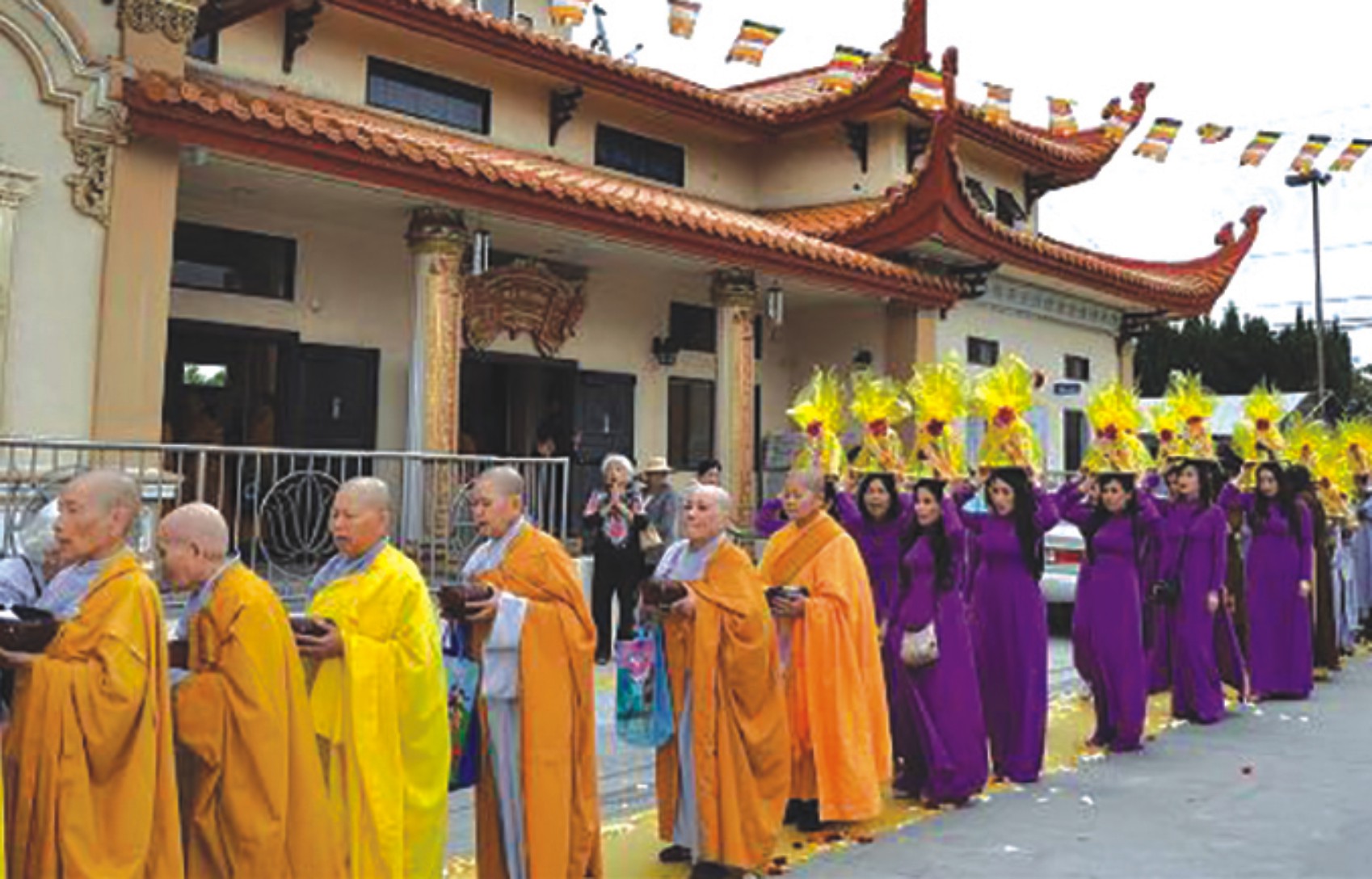 Buổi lễ bắt đầu vào lúc 10 giờ sáng, ban cung nghinh cung thỉnh chư tôn đức Tăng, Ni quang lâm chánh điện để đạo tràng tác bạch cúng dường trai tăng.