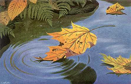 Nhìn chiếc lá trôi theo dòng