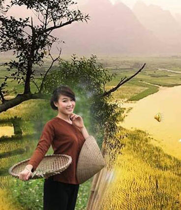 Appearing in-and-out a picking lady amidst the apricot jungle