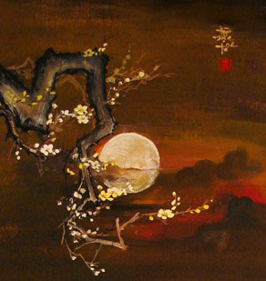 By sitting and trying to contemplate the moon and some dyed-like flowers
