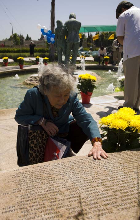 Những gia đình đồng hương có thân nhân tử nạn trong cuộc hành trình tìm Tự Do đang tìm phương danh trên những bia đá (Hình Trương Tuấn)