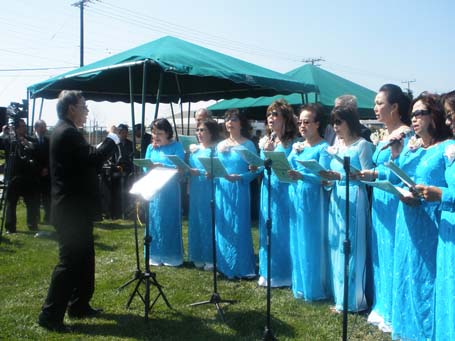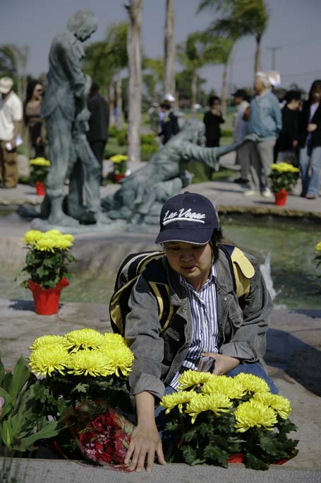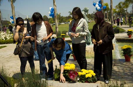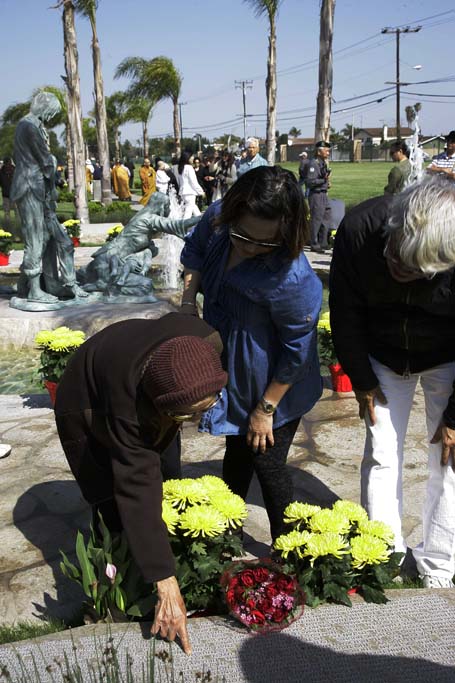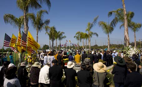 Hội Đồng Liên Tôn, Thượng Tọa Thích Viên Lý và Chư Tôn Đức GHPGVNTN-HNHK/VP2 VHĐ, quan khách và đồng hương, đồng tâm tưởng nguyện đến chư hương linh Thuyền Nhân - Bộ Nhân tử nạn trong cuộc hành trình tìm Tự Do trước Tượng Đài Thuyền Nhân trong nghĩa trang Westminster Memorial Park, tại buổi lễ tổ chức NGÀY THUYỀN NHÂN VIỆT NAM vào Chủ Nhật 25-04-2010 (Hình BS Nguyễn Văn Đức)