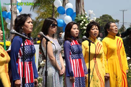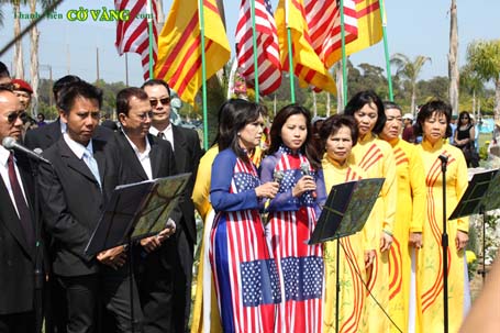Ban Tù Ca Xuân Điềm và Ca Sĩ Doanh Doanh hát Quốc Ca Hoa Kỳ và Việt Nam Cộng Hòa (Hình Thanh Niên Cờ Vàng)