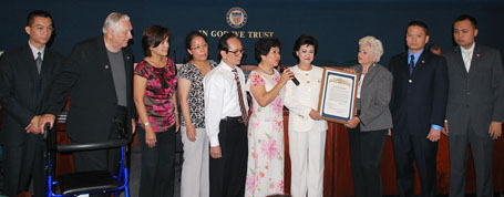 Với sự đồng thuận của Hội Đồng Thành Phố Westminster, Bà Margie Rice - Thị Trưởng, Phó Thị Trưởng Tạ Đức Trí, các Nghị Viên Frank Fry, Andy Quách và Tyler Diệp, chính thức công nhận NGÀY THUYỀN NHÂN VIỆT NAM bằng Nghị Quyết 4257 và trao đến các thành viên Ủy Ban Thực Hiện Đài Tưởng Niệm Thuyền Nhân Việt Nam: Bà Ái Cầm, GS Vân Bằng, ông Thái Tú Hạp, bà Hạnh Nhi, bà Thu Thủy (Hình Thanh Huy)