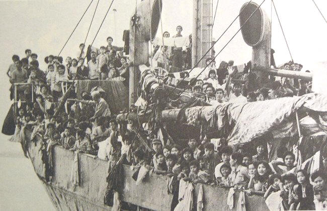Lại có thêm bóng dáng một chiếc tàu buôn từ đàng xa, như được tăng thêm sức, tôi cùng vài người khác vùng dậy trèo lên mui ra dấu cầu cứu, và cũng như chiếc tàu thứ nhất, họ lạnh lùng bỏ đi mặc cho chúng tôi kêu gào đến kiệt sức. Từ đó trở đi, mỗi ngày chúng tôi nhìn thấy hàng chục chiếc tàu buôn qua lại trong vùng nhưng không một chiếc nào chịu cứu vớt chúng tôi. Thậm chí, có ngày chúng tôi còn nhìn thấy hạm đội của Mỹ đang thao dượt trên biển với máy bay phản lực lên xuống trên các chiến hạm. Từ dữ kiện này, tôi đoán là chúng tôi đang ở đâu đó trong vùng vịnh Philipine. Chiều ngày thứ 30 trên biển, chúng tôi tuyệt vọng trong mòn mỏi, không còn hơi sức để kêu cứu nữa, mặc cho các tàu buôn vẫn qua lại nhìn chúng tôi sắp chết. Tôi nằm xoải trên mui con thuyền đưa mắt hững hờ nhìn chiếc tàu buôn mang hàng chữ Nhật chở đầy những cây gỗ với đường kính hai người ôm, chiếc tàu buôn đó, cũng như những chiếc khác trước đây, cũng lạnh lùng băng qua trước mặt chúng tôi mà đi thẳng, tôi cũng chẳng buồn ngó theo làm chi vì quá chán ngán với thế thái nhân tình. Khỏang độ hai tiếng đồng hồ sau, tôi đang nằm nhìn mặt trời xuống dần thì bỗng giật mình vì tiếng còi hụ ngân dài, tiếng còi hụ giữa biển khơi nghe vang dội, tôi nhổm mình dậy nhìn thì trông thấy từ đàng xa chiếc tàu buôn chở gỗ mà tôi nhìn thấy từ chiều đang tiến về hướng chúng tôi. Và..... Trời ạ ! thủy thủ trên tàu đang nhộn nhịp với dây thừng và phao cấp cứu, và quan trọng hơn nữa là nó đang giảm dần tốc độ để lựa thế lại gần thuyền chúng tôi mà tàu chúng tôi không bị lật do sóng vỗ. Dùng thân tàu to lớn như ngọn núi, chiếc tàu buôn chận lại các ngọn sóng đang vỗ về phía tàu chúng tôi như một bà mẹ đang bảo vệ đứa con bé bỏng của mình, các thủy thủ đang cố gắng quăng các sợi dây thừng sang phía chúng tôi. Họ đã cứu chúng tôi, sau khi đã cột được dây thừng vào thuyền chúng tôi, họ đã kéo được con thuyền cập sát hông chiếc tàu buôn, chiếc thang dây được buông xuống, chúng tôi từng người một dưới sự phụ giúp của các thủy thủ trên chiếc tàu buôn, chúng tôi đã lần lượt lên được chiếc tàu buôn an toàn. Leo lên được bong tàu chúng tôi ngã sóng soài xuống và nằm im không cử động gì được nữa, vì tất cả sinh lực còn lại đã được dồn lại cho việc leo lên chiếc tàu buôn to lớn kia sau gần hai tiếng đồng hồ cố gắng thực hiện. Con tàu nhỏ bé tội nghiệp của chúng tôi được kéo theo sau chiếc tàu buôn, nhưng sau đó có lẽ vì lý do an toàn đã được cắt bỏ, nhìn chiếc thuyền bé nhỏ tội nghiệp đã cưu mang chúng tôi một tháng trời ròng rã trên biển đang từ từ chìm xuống biển, chúng tôi không hẹn mà ai cũng bật lên tiếng khóc chào vĩnh biệt con thuyền.