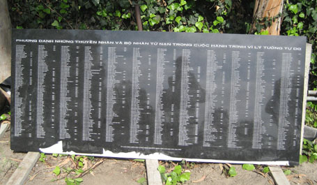 Sau hết, nhà thơ này cho biết bất cứ ai muốn tên thân nhân tử nạn bằng đường biển hoặc đường bộ trên đường vượt biên khắc lên đài tưởng niệm, có thể gởi phương danh về Ủy Ban Thực Hiện Đài Tưởng Niệm Thuyền Nhân Việt Nam, 9234 E. Valley Blvd., Rosemead, CA 91770 hoặc qua email sgtimes@aol.com, điện thoại 626-288-2696, fax 626-288-2033.