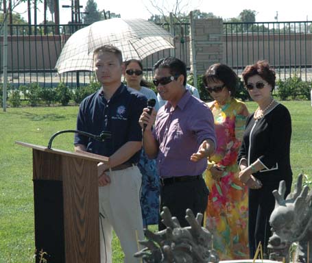 Sau nghi thức thường lệ, trong lời phát biểu Nhà Thơ Thái Tú Hạp với nội dung: Đây là lần đầu tiên Ủy Ban Thực Hiện Đài Tưởng Niệm Thuyền Nhân Việt Nam cung thỉnh Chư Tôn Đức chùa Điều Ngự và kính mời quý vị Hội Đồng Liên Tôn Nam Cali đến cầu siêu tịnh độ cho những thuyền nhân bộ nhân không đến được bến bờ Tự Do trong những cuộc hành trình đầy máu và nước mắt. Đài Tưởng Niệm Thuyền Nhân Việt nam mang hai ý nghĩa. Về biểu tượng của tâm linh, để mọi người đến đây tưởng niệm người thân đã bỏ mình trên biển cả trong những cuộc hành trình tìm tự do. Để con cháu chúng ta hiểu biết về nguyên nhân người Việt hiện hữu tại Hoa Kỳ cũng như các Quốc Gia Tự Do Dân Chủ trên thế giới. Ông Thái Tú Hạp cũng đề cập đến tinh thần hỗ trợ của Thị Trưởng Thành phố Westminster bà Margie Rice và những đóng góp của Phó Thị Trưởng Tạ Đức Trí đồng thời với tâm từ ái của Giám đốc Westminster Memorial Park, ông Jeff Gibson và Ban Giám đốc đồng ý chấp thuận Tượng Đài Thuyền Nhân an vị vào Nghĩa Trang khang trang này. Chúng tôi cũng không thể nào quên sự tiếp tay tận tình của ông Hứa Trung Lập, một thành viên của Ban Giám đốc Westminster Memorial Park để hôm nay chúng ta có được buổi lễ Cầu siêu tịnh độ.
