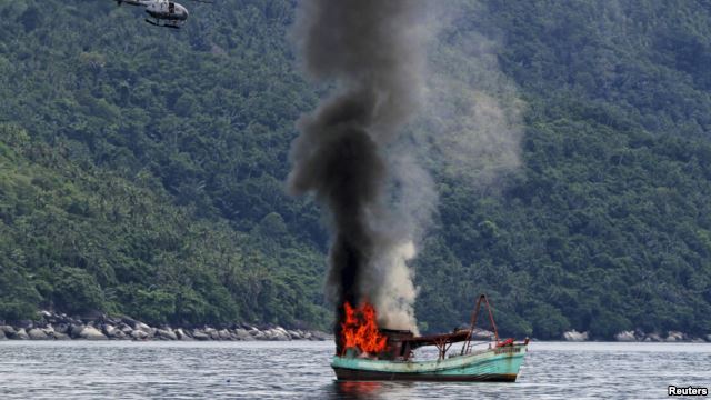 Để nhấn mạnh quyết tâm của Jakarta, bà Pudjiastuti đã lấy Mỹ ra làm ví dụ : “Nếu có một chiếc tàu đánh cá bất hợp pháp đến từ Mỹ, chúng tôi cũng sẽ đánh chìm nó như thường”.
