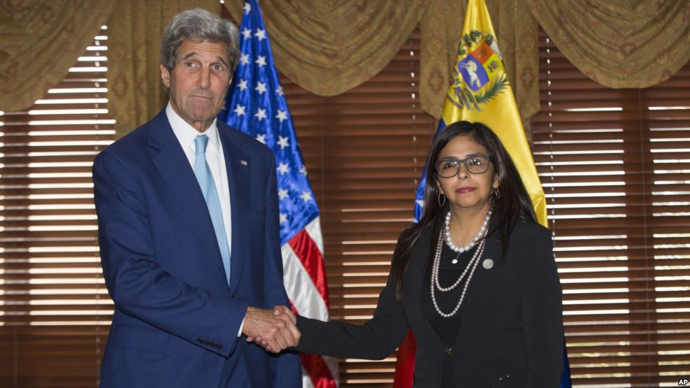 Phát biểu ngay sau ông Kerry, Ngoại trưởng Vene-zuela Delcy Rodriguez nói đất nước của bà là nạn nhân của tình trạng "bắt nạt" quốc tế. Bà cũng nói rằng những vấn đề nội bộ của Venezuela sẽ do người Venezuela tự giải quyết.