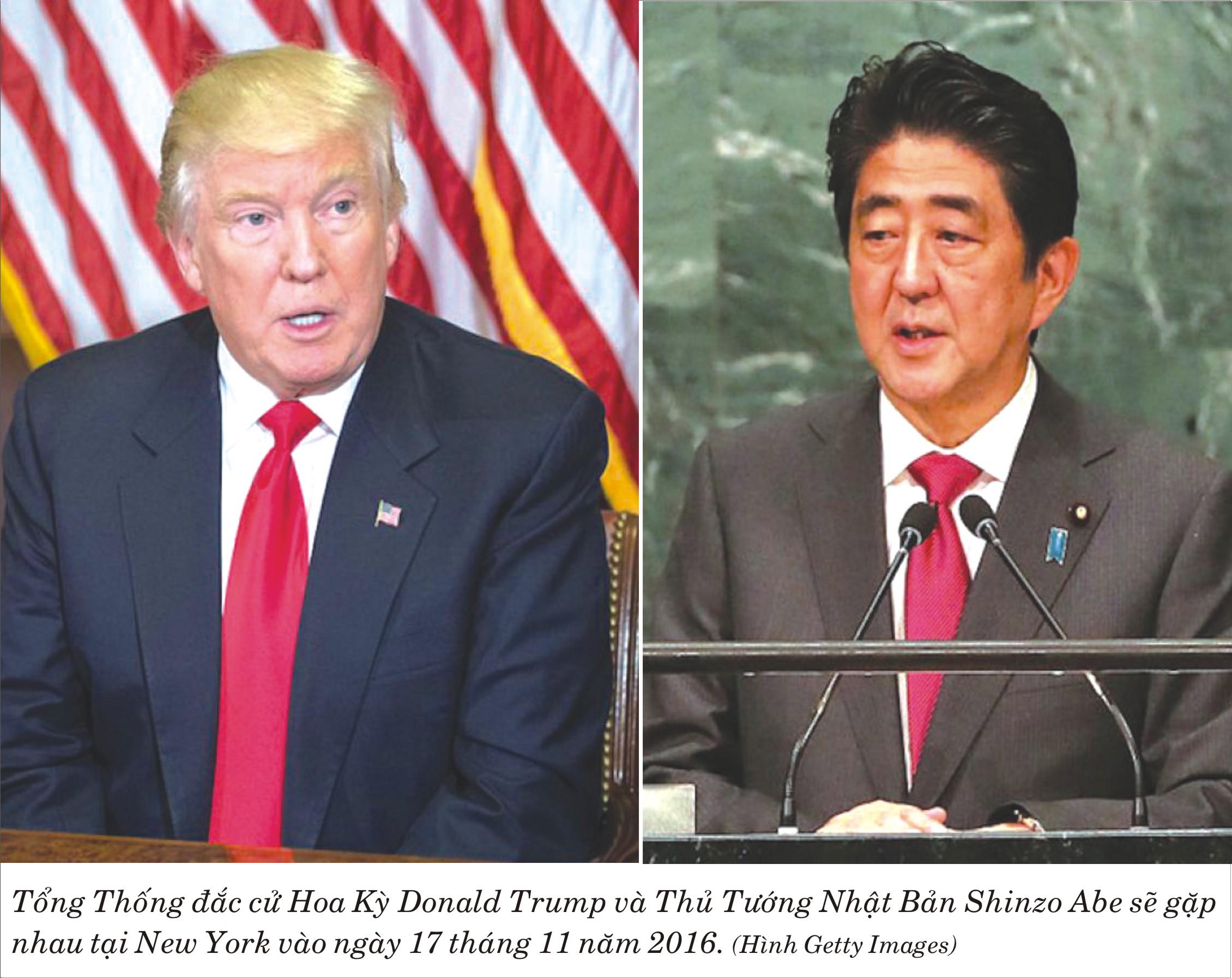 Nhân cuộc họp đầu tiên trong tuần này với một nhà lãnh đạo nước ngoài trong cương vị Tổng thống đắc cử Mỹ, ông Trump theo dự kiến sẽ tìm cách trấn an Thủ tướng Nhật Bản Shinzo Abe và các đồng minh châu Á khác đang lo lắng về những phát biểu của ông trong chiến dịch tranh cử, theo các cố vấn ông Trump.