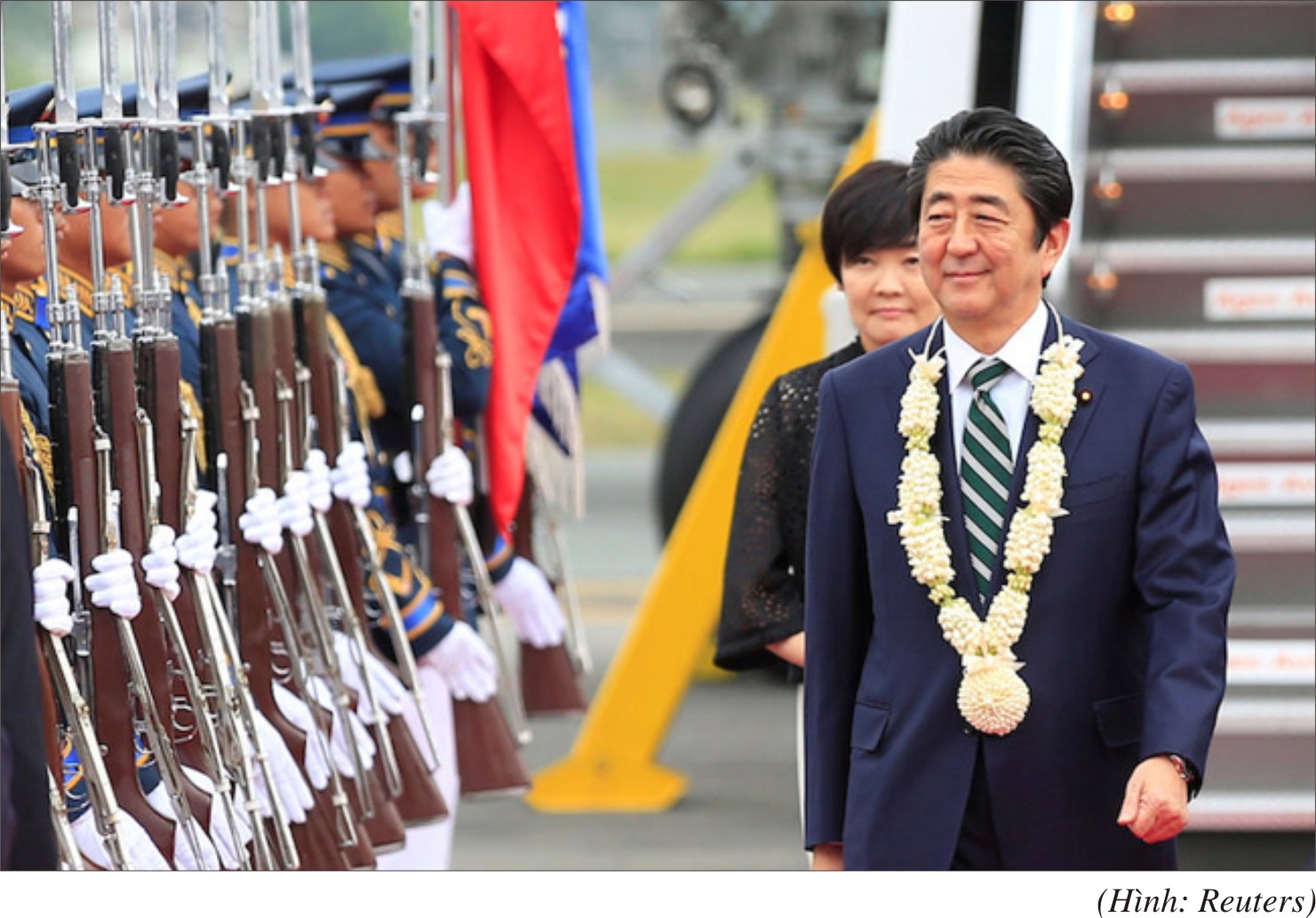 Thủ tướng Abe sẽ gặp tổng thống Philippines Duterte vào ngày mai 12/01 và dự kiến sẽ nhấn mạnh sự hợp tác của Nhật Bản với Philippines trong việc phát triển kinh tế, chống khủng bố, xây dựng cơ sở hạ tầng. Nhật Bản cũng sẽ hứa hỗ trợ Philippines khi nước này nắm quyền chủ tịch ASEAN trong năm nay, trong đó vấn đề Biển Đông sẽ được đưa vào chương trình nghị sự.