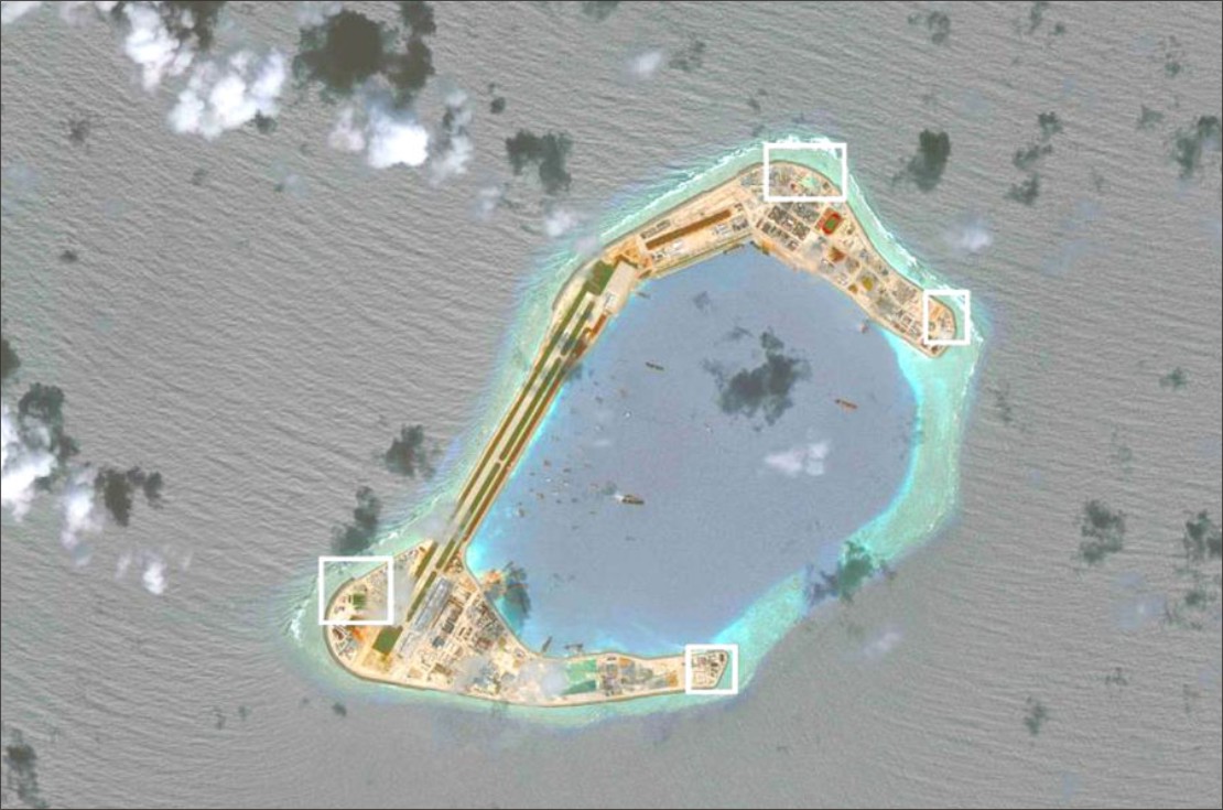 Theo báo cáo của Bộ Quốc Phòng Hoa Kỳ gởi Quốc Hội hôm 6/6/2017, Trung Quốc đang xây các nhà chứa chiến đấu cơ và các vị trí đặt vũ khí cố định, cùng với nhiều cơ sở quân sự khác trên ba đảo chính mà Bắc Kinh kiểm soát ở Biển Đông.