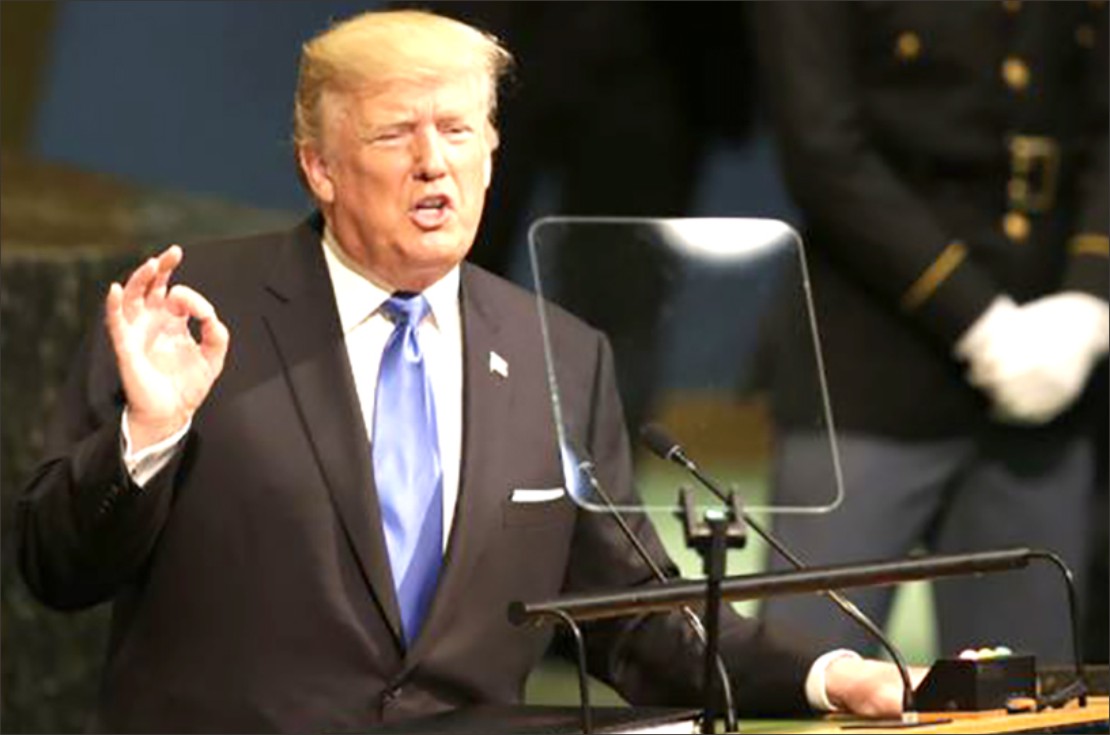 Ông Trump đã chế giễu Iran, nói rằng các nhà lãnh đạo nước này đã biến "một quốc gia giàu có thành một quốc gia bất trị suy tàn về kinh tế" làm suy yếu hòa bình ở Trung Đông với những cuộc phiêu lưu quân sự. Ông Trump gọi thỏa thuận năm 2015 của cựu Tổng thống Hoa Kỳ Barack Obama và 5 cường quốc khác để kiềm chế chương trình vũ khí hạch nhân của Iran "một nỗi xấu hổ đối với Hoa Kỳ". Ông mô tả chế độ của nhà lãnh đạo Vene-zuela Nicolas Maduro là "tham nhũng" và nói ông Maduro đã đưa quốc gia Nam Mỹ "đến bờ vực sụp đổ hoàn toàn. Người dân đang đói khát và đất nước họ đang sụp đổ". Ông Trump, đắc cử hồi năm ngoái nhờ vận động bầu cử với nghị trình "nước Mỹ trên hết", nói rằng các nhà lãnh đạo thế giới hãy "tôn trọng quyền lợi của nhân dân trong nước và quyền chủ quyền của tất cả các quốc gia”. Ông Trump tuyên bố: "Ở Mỹ, chúng tôi không tìm cách áp đặt lối sống của mình lên bất cứ ai khác”.