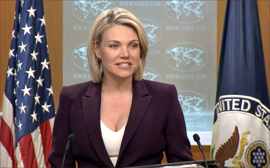Phát ngôn viên Bộ Ngoại Giao Hoa Kỳ Nauert nói với truyền hình Alhurra rằng Hoa Kỳ đang thúc đẩy để tập trung trở lại cái gọi là tiến trình Geneva mà LHQ đã bắt đầu vào năm 2012 với một lộ trình tiến tới chấm dứt cuộc xung đột ở Syria bằng một hiến pháp mới cùng các cuộc bầu cử.