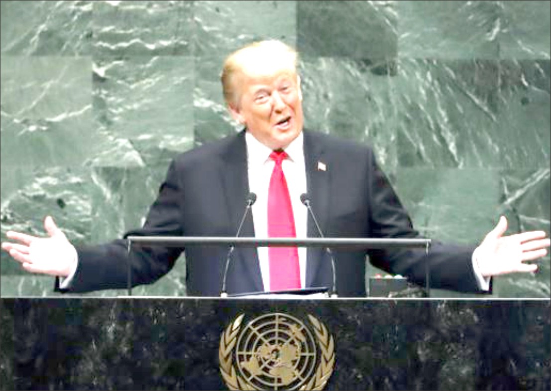 Nhưng phần lớn bài diễn văn 35 phút của ông là lời biện hộ cho các chính sách "Nước Mỹ Trước Tiên" của ông khi đặt lợi ích của Mỹ lên trước bất kì sự dịch chuyển nào về hướng chủ nghĩa toàn cầu, một thông điệp được đón nhận bằng sự im lặng trong hội trường.