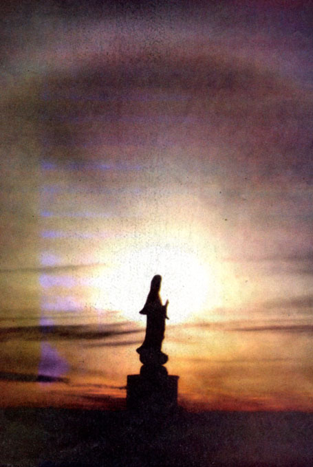 Chúng tôi ai cũng tất bật chạy lại xe để lấy máy ảnh. Anh Nguyên Tâm, một nhiếp ảnh gia chuyên nghiệp của nhóm chúng tôi, ngắm, chỉnh, bấm máy lia lịa đủ mọi góc cạnh của vầng hào quang Quán Thế Âm. Riêng chị Minh Thanh dáng người nhỏ nhắn khi vừa bấm máy xong thì quỳ xuống tại chỗ xì xụp lạy lia lịa không biết bao nhiêu lạy, miệng lâm râm khấn "Nam Mô Linh Cảm Ứng Quán Thế Âm Bồ Tát..." Các chị khác thì đứng chấp tay lâm râm khấn nguyện. Chị Minh Thanh nói với giọng cảm động: "Quả thực trong đời em chưa bao giờ nhìn thấy hào quang của Phật như hôm nay, chắc đây là lần đầu mà cũng là lần cuối, em đã mãn nguyện quá rồi. Nam Mô Quan Thế Âm Bồ Tát, con cám ơn Mẹ đã cho con gặp Mẹ hôm nay." Anh Nguyên Tâm liền ngắt lời chị: "Hữu duyên thiên lý năng tao ngộ" nên cả nhóm mới được gặp đấy!"