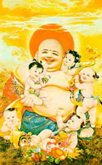 Có người còn gọi bức tượng đó là "Phật Hoan Hỷ". Đầu năm đến chùa cúng vái Ngài để được "hoan hỷ" suốt năm. Nhưng cũng có nhiều người hiểu lầm cho đó là vị thần có nhiều con cái, để những ai muốn có con, hãy đến lễ lạy Ngài mà cầu xin! Cũng có nhiều người lầm lẫn với bức tượng khác của một vị thần to béo, miệng cười toe toét, có vẻ khoái trá, hai tay nâng một lượng vàng, đó chính là tượng thần tài, không liên quan gì đến Phật giáo.