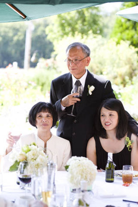 - Giới thiệu với em đây là vợ anh, con của anh là Mimi em đang bồng đó.