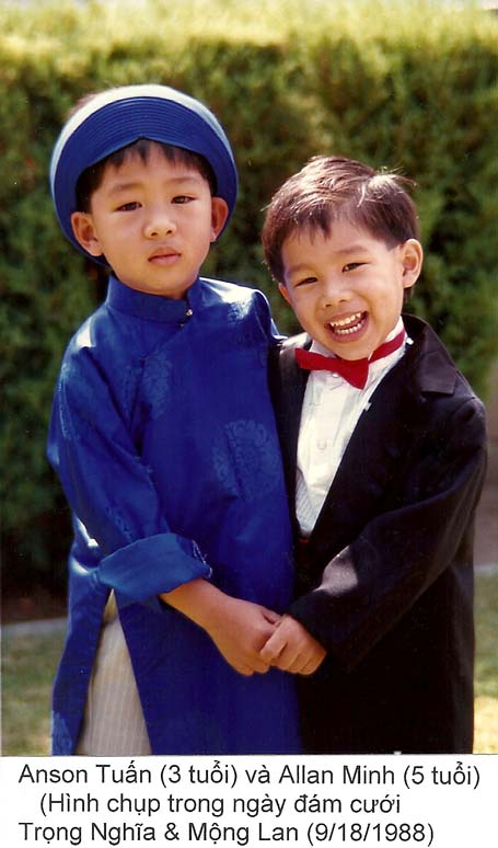 Tuấn của Ba Mẹ cũng có một đặc tính tốt, là... con bền chí, và không bỏ cuộc trước một khó khăn nào. Ba Mẹ cho anh Minh con và con học piano, nhưng anh Minh con đã bỏ học đàn sau hai năm. Còn riêng con, có lẽ vì có gene yêu thích âm nhạc như Ba Mẹ, nên con đã cố gắng theo đuổi trong gần 8 năm trời, và đàn rất hay. Ba cám ơn con cũng đã thỉnh thoảng đệm đàn cho Ba hát các ca khúc bán cổ điển ngoại quốc. Ba cũng ghi nhớ nhiều kỷ niệm với anh em con, lúc thì phụ giúp hai anh em con làm homework, kèm toán cho các con, lúc thì chở anh em con đi học ở trường, đi học đàn, học bơi, học võ, hay đi ciné, và shopping với Ba Mẹ. Ba cũng nhớ là Ba đã dạy cho hai anh em con tập lái xe, dạy hai con thắt cravate khi đi dự Senior Promp lần đầu tiên tại trường các con vào dịp cuối khóa học. Ba cũng không thể nào quên công lớn của Ngoại và dì của hai con, cũng như bốn bàn tay bé nhỏ của hai anh em con, đã phụ giúp Ba Mẹ bán băng nhạc trong nhiều buổi sinh hoạt văn nghệ gây quỹ thiện nguyện khắp nơi, và phân nửa số tiền Ba Mẹ thu được trong mỗi lần trình diễn từ những băng nhạc Đạo và Thiền Ca và nhạc Pháp do Ba Mẹ sản xuất và phát hành từ 20 năm qua, cũng đã được cúng dường cho các chùa, để hồi hướng công đức cho cửu huyền thất tổ của gia đình hai bên nội ngoại chúng ta!