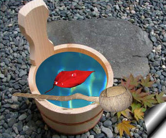 Đại sư dẫn chàng trai đến bên một con suối nhỏ chảy ngang qua chùa, tiện tay hái một lá trên cây xuống và bảo với một chú tiểu đi lấy dùm cho mình một cái thùng và một cái gáo múc nước.