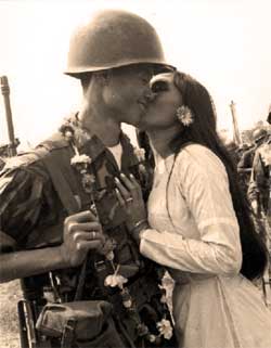 Thấy một ngôi nhà mở cửa, bọn tôi bước vào làm quen. Chủ nhà là một cô gái nho nhỏ dễ thương, mời đón mấy thằng lính trời ơi đất hởi mà miệng vui cười, e thẹn nhìn tôi bằng cặp mắt nai tơ. Vậy mà thằng lính ngang tàng như tôi lại chết trong đôi mắt ấy. Bắt đầu từ một chuyện tình cờ như vậy đó, mà tôi trở thành chú rể của Ninh Hòa hơn một năm sau. Trường Trần Bình Trọng cũng vừa có một cô học trò bỏ trường, bỏ lớp, bỏ bạn bè và bỏ cả đội múa ”Trăng Mường Luông”.