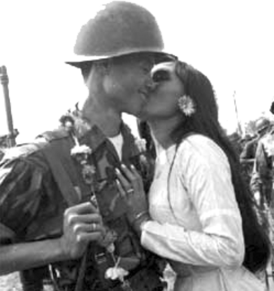 Thấy một ngôi nhà mở cửa, bọn tôi bước vào làm quen. Chủ nhà là một cô gái nho nhỏ dễ thương, mời đón mấy thằng lính trời ơi đất hởi mà miệng vui cười, e thẹn nhìn tôi bằng cặp mắt nai tơ. Vậy mà thằng lính ngang tàng như tôi lại chết trong đôi mắt ấy. Bắt đầu từ một chuyện tình cờ như vậy đó, mà tôi trở thành chú rể của Ninh Hòa hơn một năm sau. Trường Trần Bình Trọng cũng vừa có một cô học trò bỏ trường, bỏ lớp, bỏ bạn bè và bỏ cả đội múa ”Trăng Mường Luông”.