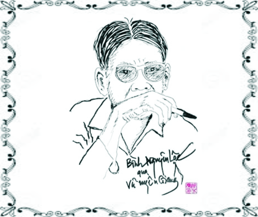 Bình Nguyên Lộc. Cái mái tóc rẽ giữa, hai miền trung dung phân định như tấm lòng người quân tử một đường ngôi đời thẳng tắp. Bình Nguyên Lộc, bộ đồ lụa trắng, rất thông phán tòa sứ, rất trăng nước miền Nam, trên chiếc cyclo đạp chậm đưa ông tới gặp các tòa soạn Nghệ Thuật, Văn, Vấn Đề chúng tôi làm, phần lớn là anh em nhà văn miền Bắc. Không có Nam Bắc với Bình Nguyên Lợc, chỉ có văn chương, chỉ có hợp tác, chỉ có bằng hữu. Tôi làm biếng lắm, ít khi đi đâu, đến chơi tôi nhé. Thân tình, hòa nhã. Cái truyện ngắn này dục tôi viết gấp, thì phải viết gấp, không được tốt lắm, thôi dùng tạm vậy. Nhũn nhặn, bình dị. Một năm trong bốn năm liền cùng ở chung trong Hội Đồng Giám Khảo giải thưởng Văn Chương toàn quốc, ông từ chói nói chứng áp huyết không còn leo nổi những bực thềm cao của Dinh Độc Lập, cặp mắt đã yếu chẳng thể nào đọc hết được những tác phẩm dự thi. Nài mãi mới nhận. Nhưng cười, giao hẹn: “Vậy phải đọc hết giùm tôi, rồi đưa cho tôi đọc mười cuốn khá nhất.” Nghiêm chỉnh. Ngay thẳng. Năm đó, ông không vào Dinh Độc Lập được thật. Những bực thềm cao quá cho tài viết hàng đầu.