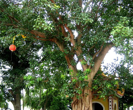 bồ đề, cây sanh non trước khi thành cổ thụ. Những cây bồ đề vắt vẻo ở bờ tường,