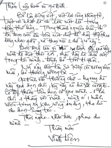 Trong một thư khác, viết đêm 21-10-1992, Vĩnh Điện tâm sự: