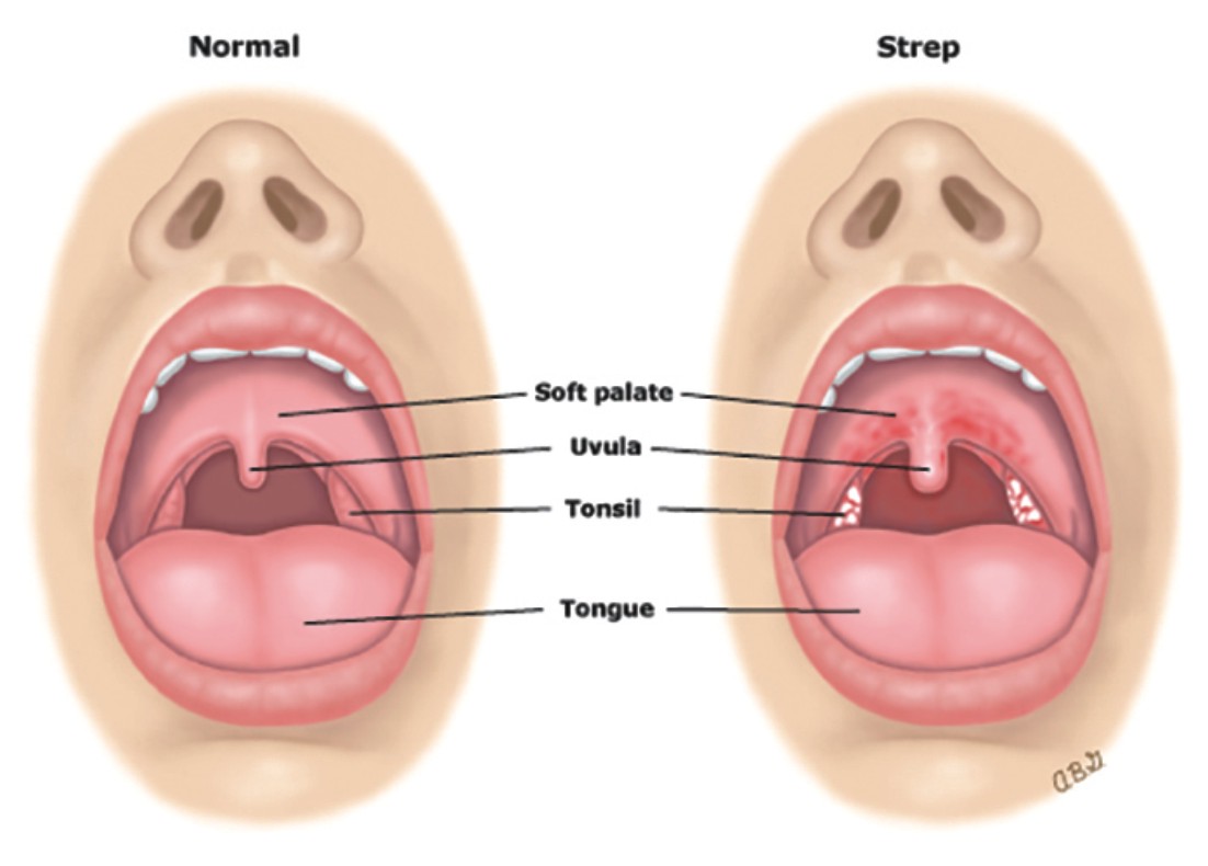 Còn bệnh đau họng do vi trùng streptococcus nhóm A gây những triệu chứng khác biệt: